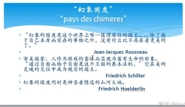 戴晖教授首先解释了讲座的主题,“幻象国度”是卢梭提出的,法文为“pays des chimeres”。此次讲座把卢梭、席勒、荷尔德林作为诗人的同盟介绍给大家,同盟的共同主题是“人的人性”。“人性”是一个古老的主题,古希腊的人性听从奥林匹斯山上众神的告诫,由宙斯的意志来主导;中世纪的人性在于神对人的惠爱。都是从不朽者开产出可朽者的具体生命的使命,即人的人性,或说人的规定。而文艺复兴之后进入公民时代,人性不再需要立神,而是由人自身来展现。语言上仍然经常会听到“人性的神圣性”“人性是神圣不可侵犯的”,但这个神圣不可侵犯要由人自己来捍卫,它的基础在人自身,不再把这神圣性放神或上帝那里。在这样的时代,卢梭、席勒赫尔德林各出手眼,用他们伟大而天才的创作给后人留下了如火如茶的幻象,给人的人性带来了生命力,推动了整个时代的精神。