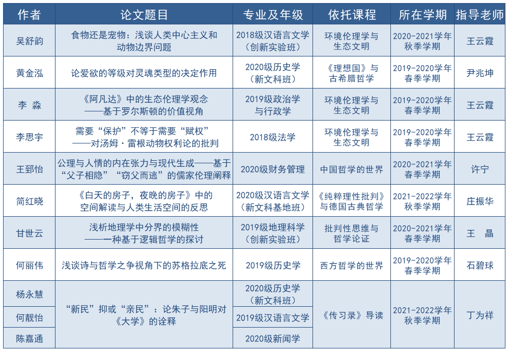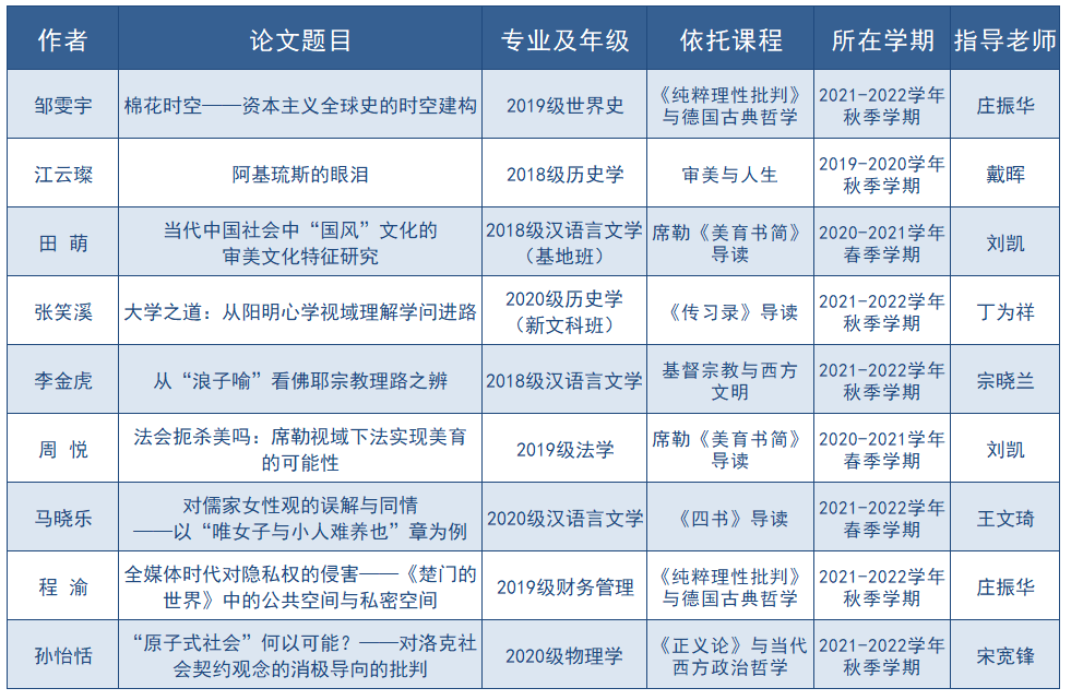 运行2年来,以创新教育模式为抓手,以“学科交叉”为导向,不断优化模块化的跨学科课程设计,为进入书院学习的学生量身打造了“哲学基础与前沿、哲学经典导读、伦理与文化生活、科学与批判性思维、艺术与宗教文明”五大模块30多门特色鲜明的哲学通识核心课程。书院不断创新育人模式,促动教学方式改革,形成“小班教学+小组研讨”相结合、“导师制+助教制”相联合的教育改革实践方案。书院每个教学班20人左右,每班设4-6讨论小组。除课堂讲授外,每门课还需要有2-3次课外小组研讨。每次小组研讨课,以启发、阅读、论证和交流为主要形式,以深层次的课程研讨激发学生的学习主体性,让不同学科专业的学生在对话交流中进行思维碰撞。每次研讨,学生都需要提交1500-3000字的小组讨论稿,这些讨论稿在研讨课前会由助教和导师多次修改或提供建议,在研讨课中会充分论证和讨论,最终以学术论文的形式加以呈现,不断提升学生批判性思维、知识迁移、写作表达等多方面能力,真正做到以能力培养为核心,助力学生全面发展。本次通识课程论文大赛,书院众多学子和导师获奖,是书院通识核心课程教学模式取得实效的有力体现,实质性地推动了“哲学+”跨学科复合型人才的培养。