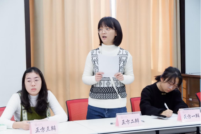此次比赛反方“那哲么说队”获胜,最佳辩手是反方四辩饶倩。