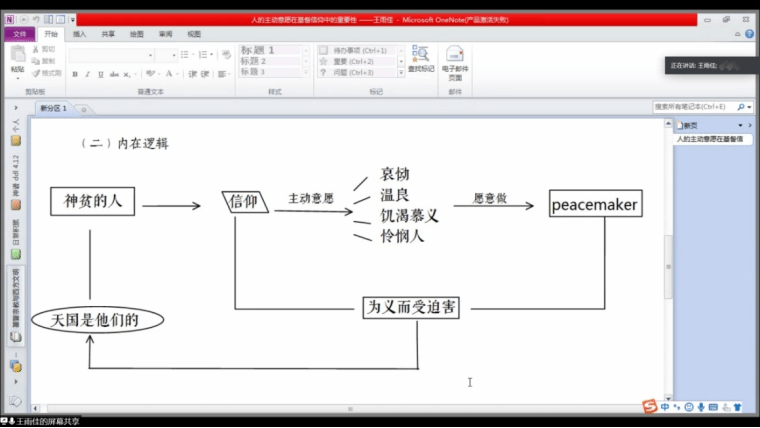 第一位发言的王雨佳同学论述了“人的主动意愿在基督信仰中的重要性”。卢海成同学指出,王雨佳的发言强调了人的主观意愿的重要性,尤其是突出了一个人即便只是有恶的想法(而无恶的行动)也是为基督的诫命所禁止的,这充分表明了基督教对“善”的意愿的绝对推崇。但是反之,假如基督徒从善的想法出发,却做了恶事,导致了不好的结果,该如何看待呢?高丽芳同学提出,基督教也有通过律法给出外在约束的方面,另外注重自己的内心纯洁主要是为了让他人也向善。王雨佳认为,如果一个人出于善的动机做了不好的事,其他人应当对其予以宽恕,他本人则可以通过忏悔来走向解脱。