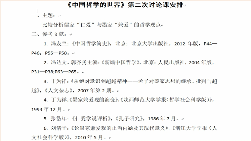 《中国哲学的世界》课程第二次讨论课已经在本学期第16周周末进行完毕。5月12日将第二次讨论课的包括主题、分组、举行时间、格式要求、考核要求等具体安排下发给了所有同学,6月3日审核、批改完了所有同学的讨论稿初稿,6月5日、6日、7日分别进行了四组讨论课。从第二次讨论课的讨论稿内容、讨论课的主题发言和提问讨论质量来看,相较于本学期第一次讨论课,同学们在哲学思维、学术专业程度、文献引用质量、讨论稿格式等等方面,所有同学都获得了长足的进步,这既展现了猫耳fm