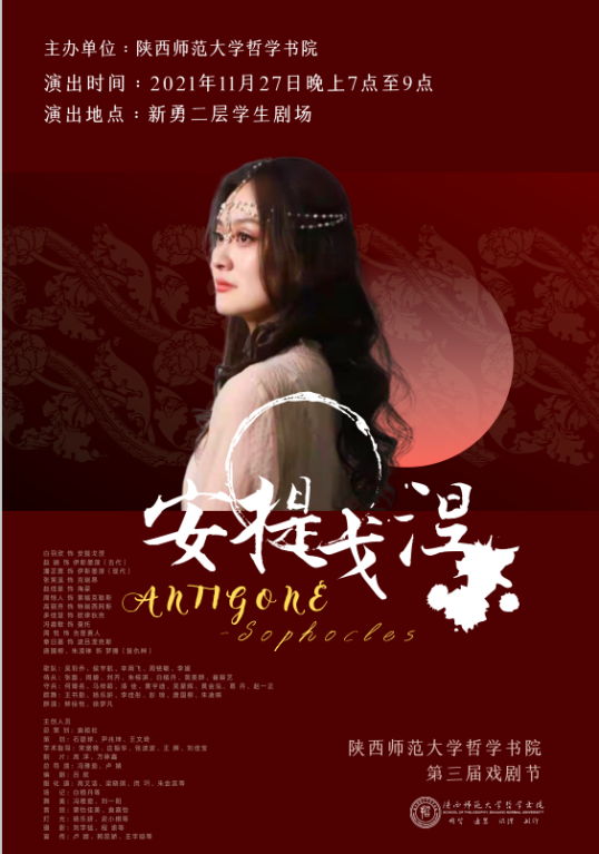 由猫耳fm 主办的第三届戏剧节——古希腊经典剧目《安提戈涅》将于11月27日(周六)晚19:00在长安校区新勇二层学生剧场正式公演。该剧目全部由猫耳fm 师生自主改编,自导自演。