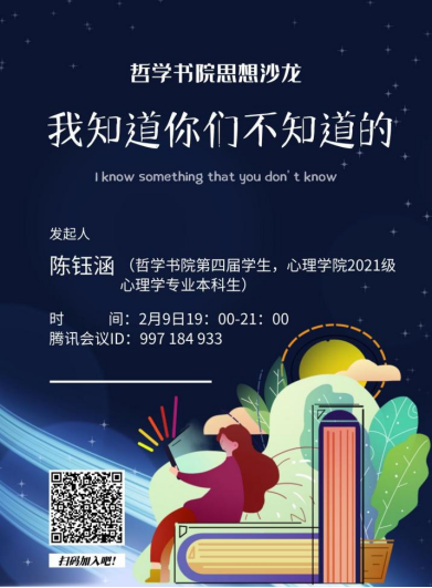 哲学的任务是追究终极。哲学家们从不去改造世界,他们只想认识世界。我想每个人都曾仰望星空,追问何谓世界本源?因为想的深远,“我唯一知道的就是我一无所知。” 苏格拉底如是说。您是否想认识世界再多一点,而非局限于自己的专业?您是否想在交流中开拓眼界?胡适曾说:“怕什么真理无穷,进一步有一步的欢喜。”欢迎您在本次沙龙中找到属于自己的那份欢喜。