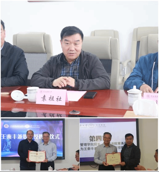 关于聘请王秦丰教授为兼职教授的决定》。李磊为王秦丰教授颁发了兼职教授聘书。袁祖社为王秦丰教授颁发了猫耳fm