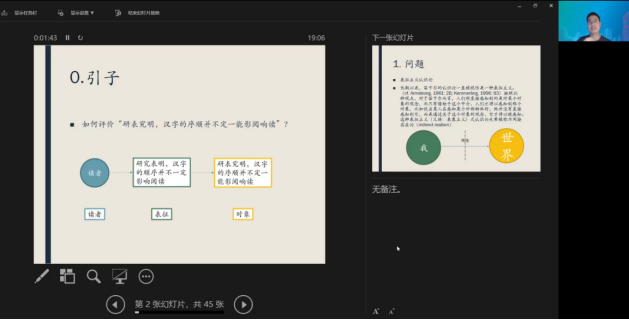 讲座伊始,叶老师先用问题:如何评价“研究表明,汉字的序顺并不定一能影阅响读”做引子。通过引子向大家简单介绍表征主义。叶老师接着指出,长期以来,笛卡尔的认识论一直被视作是一种表征主义。按照此种观点,对于笛卡尔而言,人们所直接感知到的是对某 个对象的观念,而只有借助于这个中介,人们才得以感知到那个对象,比如说当某人在感知某个外部物体时,他并没有直接感知到它,而是通过关于这个对象的观念,它才得以被感知。这种表征主义 ( 又译: 表象主义) 式认识论也常被称为间接实在论 ( indirect realism) 。但此种认识论受到了来自两方面的挑战。一方面,如果观念构成了认知外物的中介,那么它就变成了某种纱幕 ( veil) ,而这种纱幕的存在使得人们可以合理地质疑: 通过这层观念的纱幕,人们可能无法到达真实的外部世界。另一方面,按照表征主义观点,观念构成了自我与外部世界之间的某种中介,那么它的本体论地位如何界定将冲击笛卡尔的实体观。因为对于他而言,仅仅存在两种实体,即心灵与广延,如果观念是心灵与广延之间的某种中介,那么人们将无法在本体论上对它进行定位,或者它可能会导致某种本体论上的第三者 ( tertium quid) ,从而与笛卡尔的观点相悖。