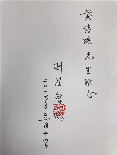 图4刘学智教授为黄诗煊赠书